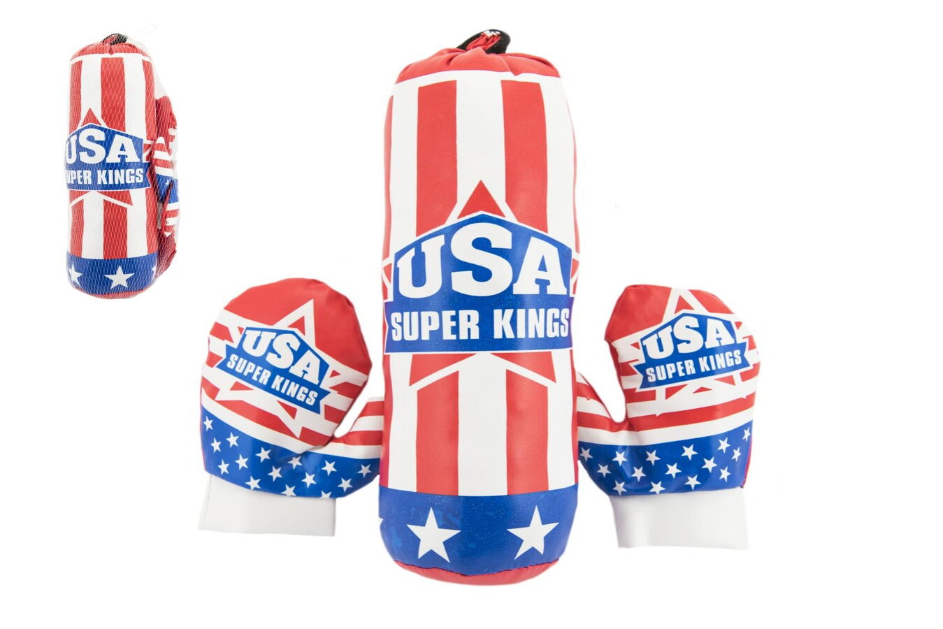 Dětský boxovací pytel a rukavice s motivem americké vlajky.