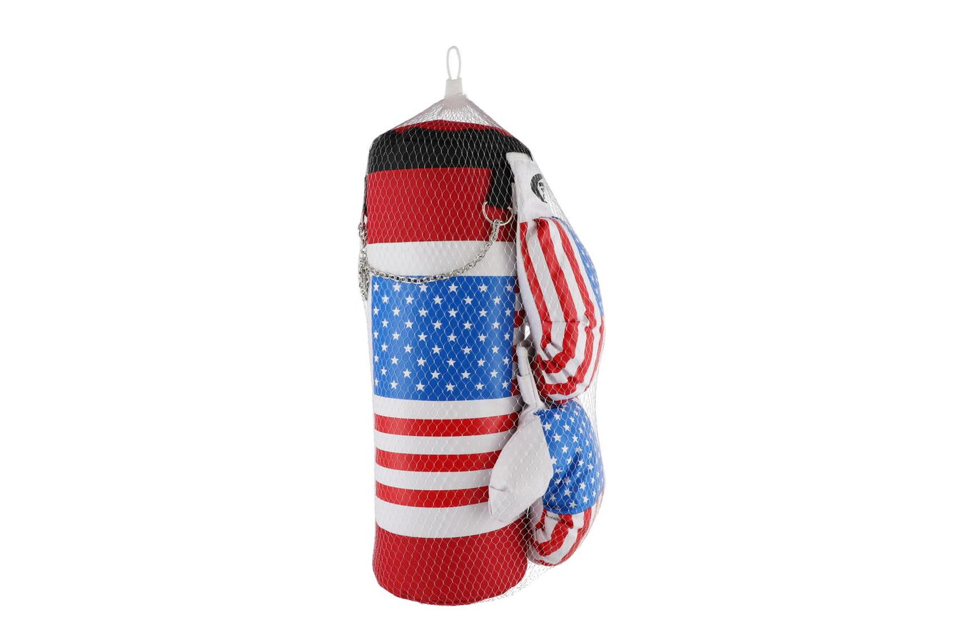 Dětská boxovací sada s motivem americké vlajky. Veďte své děti ke sportu. Jednoduchý nástroj jak zabavit unuděné děti, nebo vybít jejich energii. Určitě zažijete i spousty zábavy.