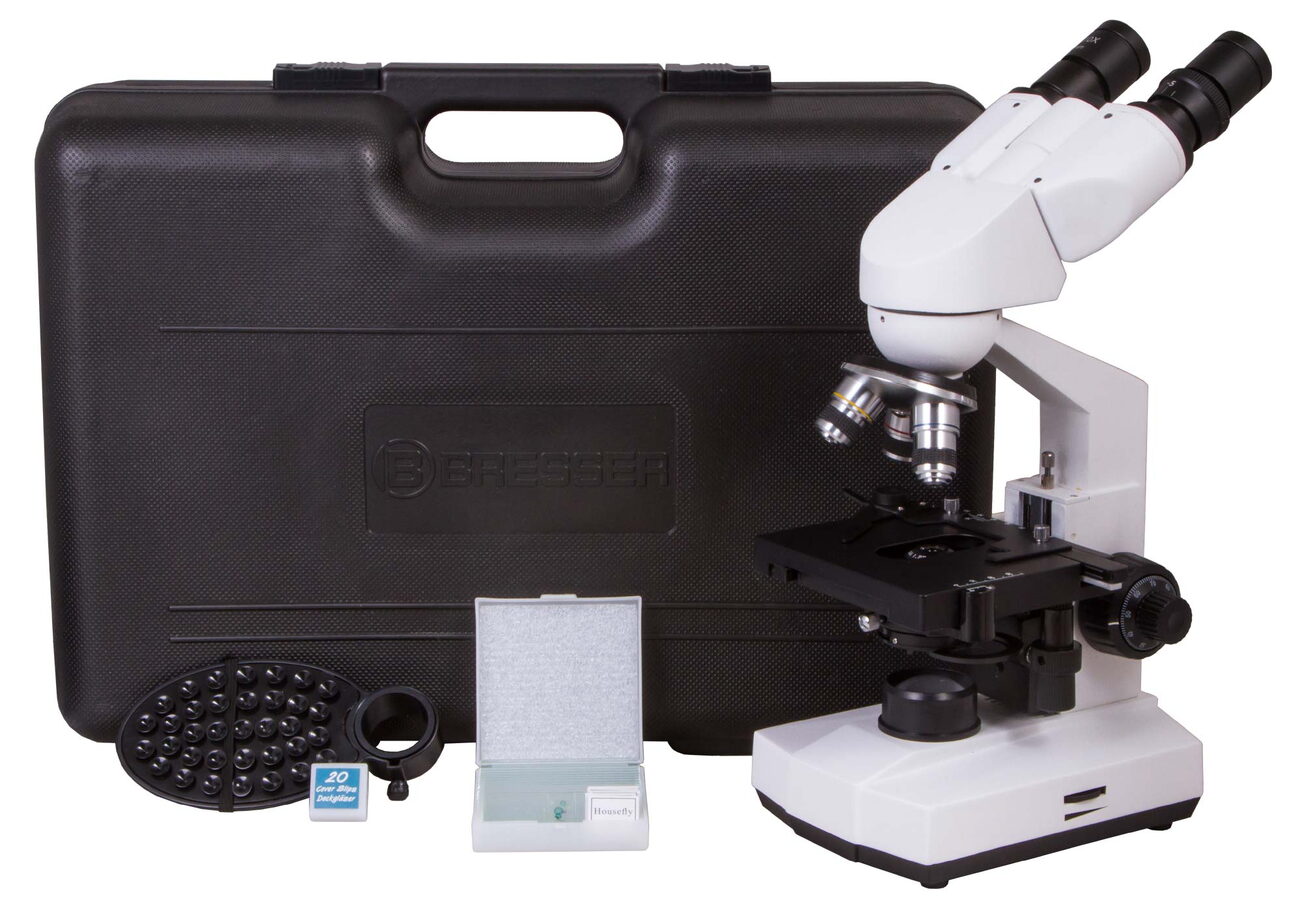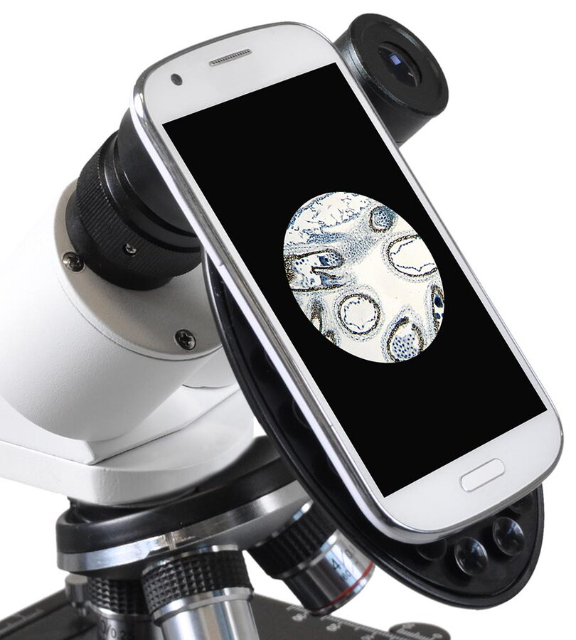 The Bresser Erudit Basic 40–400x comes with a sturdy case for transport and storage, as well as with a smartphone holder for easy and convenient documentation of microscopic images and video.
