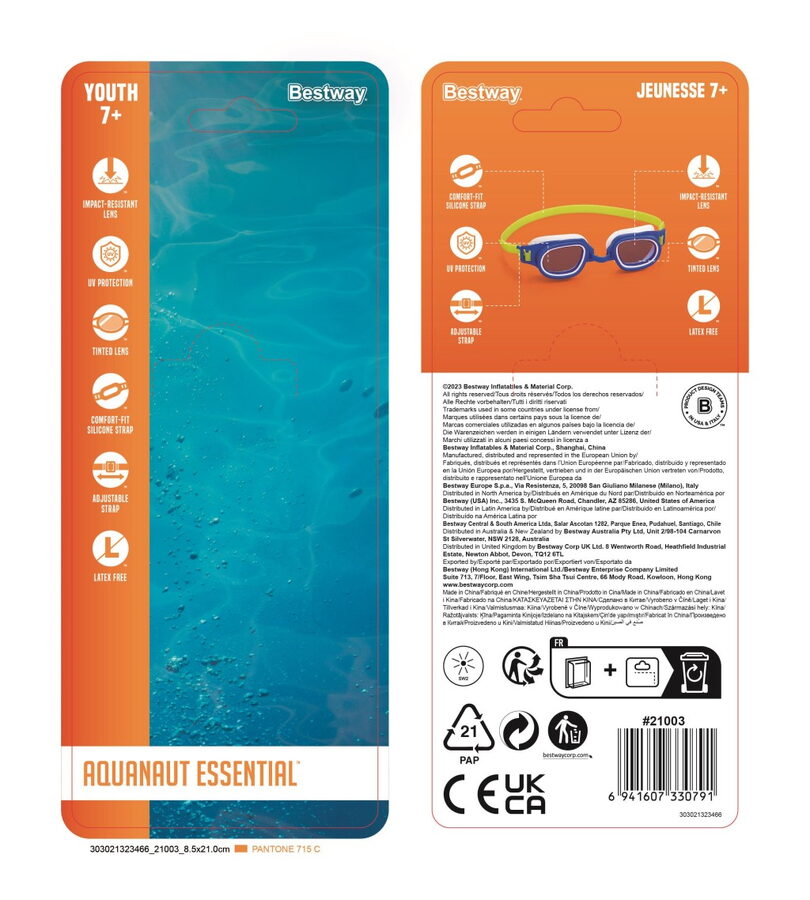 Moderní plavecké brýle s bezpečnostními čočkami. Pohodlné tvarované košíčky na oči pro dokonalou těsnost. Upravitelný pásek pro bezpečné a pohodlné nošení. 3 různá barevná provedení. Pro děti od 7 let.