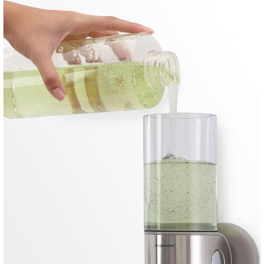 Zásobníky mají široký otvor, mýdlo, šampon i další přípravky do něj nalijete snadno a rychle bez znečištění okolí