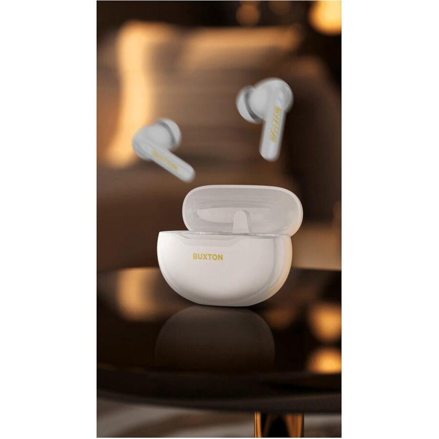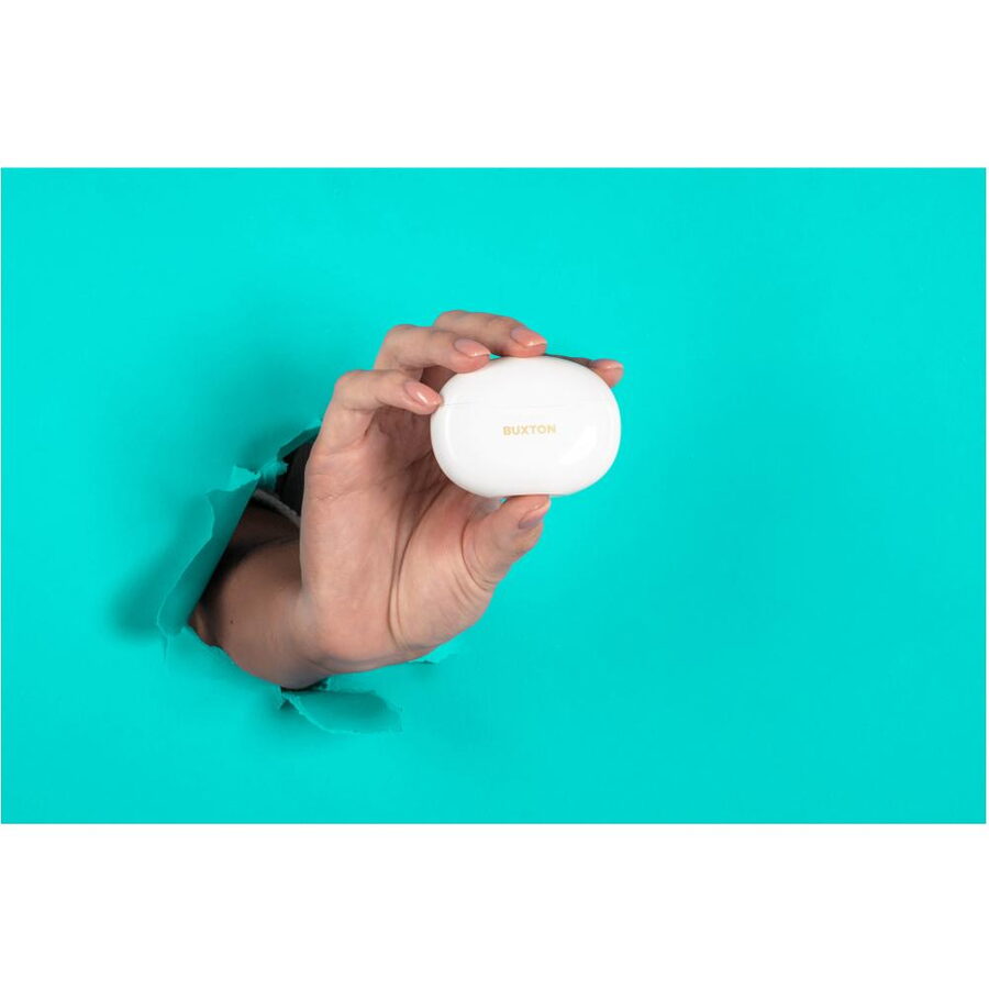 Díky certifikaci odolnosti vůči vodě a vlhkosti IPX6 jsou bezdrátová sluchátka BUXTON vhodná i pro deštivé dny nebo aktivní sportovní vyžití. Celková výdrž sluchátek s přiloženým nabíjecím pouzdrem činí až 25 hodin. Nabíjecí doba sluchátek v pouzdru je 1 hodina, celého pouzdra pak 1,5 hodiny. Dobíjení provedete přes USB-C. Sluchátka umožňují pohodlné ovládání poslechu a hovorů dotykem – přímo na těle sluchátek. Ergonomicky tvarované náušníky jsou pohodlné a příjemné na nošení. Sluchátka podporují hlasové asistenty Siri a Google.
