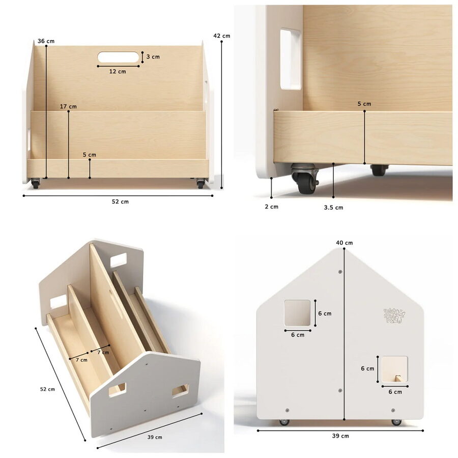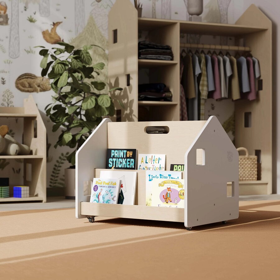 Oboustranná knihovna na kolečkách je praktické a bezpečné řešení do dětského pokoje. Knihy jsou v ní uložené tak, aby děti viděly jejich obálky a mohly si samostatně vybrat to, co je zaujme. Podporuje tak nezávislost i přirozenou lásku ke čtení. Díky kolečkům lze knihovnu snadno přesunout tam, kde je zrovna potřeba. Její design je ekologický, bezpečný a maximálně přátelský k dětem.Knihovna je vyrobena z kvalitní lakované březové překližky a její stabilní konstrukce s hladce zaoblenými hranami zajišťuje maximální bezpečnost. Barva produktu se může mírně lišit od fotografie v závislosti na nastavení vašeho zařízení. Hlavní vlastnosti: stabilní a bezpečná konstrukceoboustranný přístupmobilita díky kolečkůmvyrobeno z kvalitní březové překližky, bezpečné laky na vodní bázivyrobeno v České republice