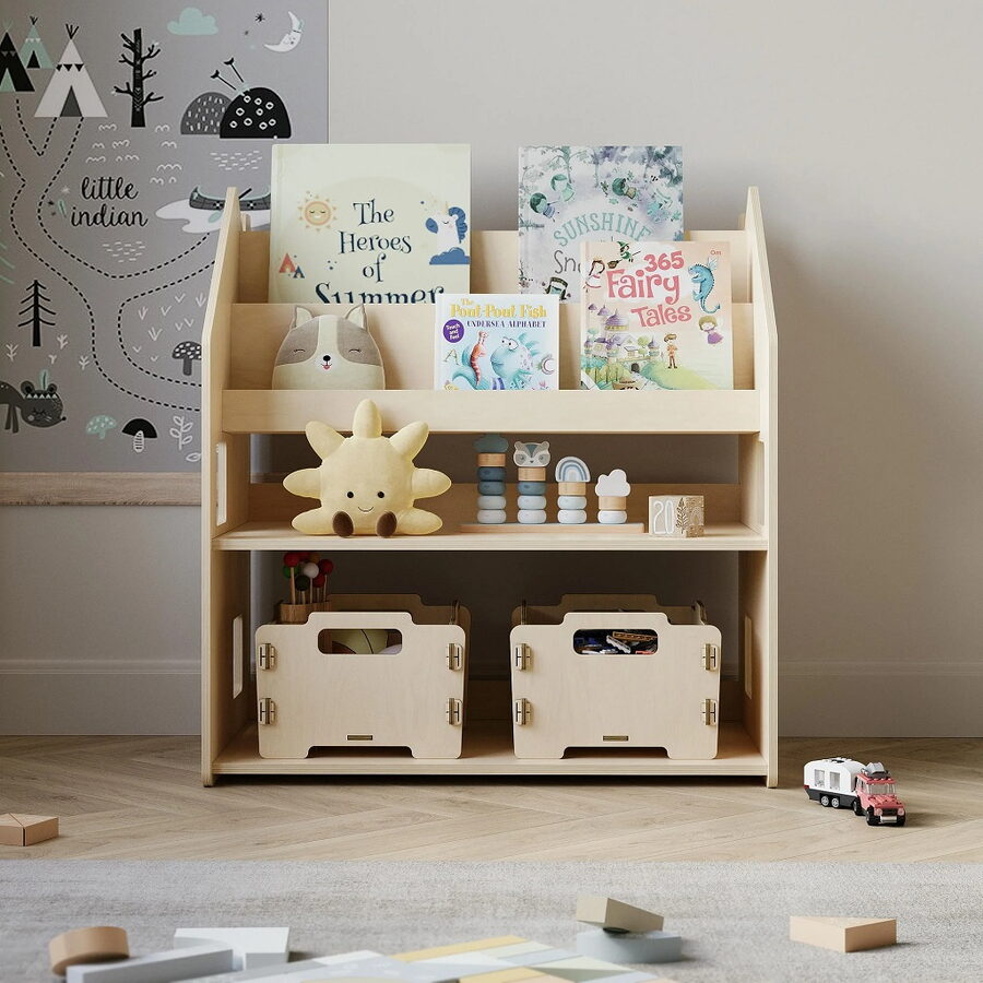 Tato police na hračky a knihy je navržena tak, aby podporovala dětskou samostatnost i pořádek. Díky přehlednému uspořádání si děti mohou samy vybírat a ukládat knihy i hračky, přičemž obálky knih jsou krásně viditelné a lákají ke čtení. Police nabízí čtyři prostorné regály a zadní úložný prostor vhodný pro knihy či hračky. Robustní a bezpečná konstrukce s pečlivě zaoblenými hranami je ošetřena lakem na vodní bázi. Díky jednoduchému, čistému designu krásně zapadne do každého interiéru. Součástí balení je samotná police, přehledný montážní návod i potřebné nářadí. Police je vyrobena z kvalitní lakované březové překližky a její stabilní konstrukce s hladce zaoblenými hranami zajišťuje maximální bezpečnost. Barva produktu se může mírně lišit od fotografie v závislosti na nastavení vašeho zařízení. Hlavní vlastnosti: stabilní a bezpečná konstrukce2 v 1 police na hračky a knihy4 regály a zadní úložný prostorvyrobeno z kvalitní březové překližky, bezpečné laky na vodní bázivyrobeno v České republice