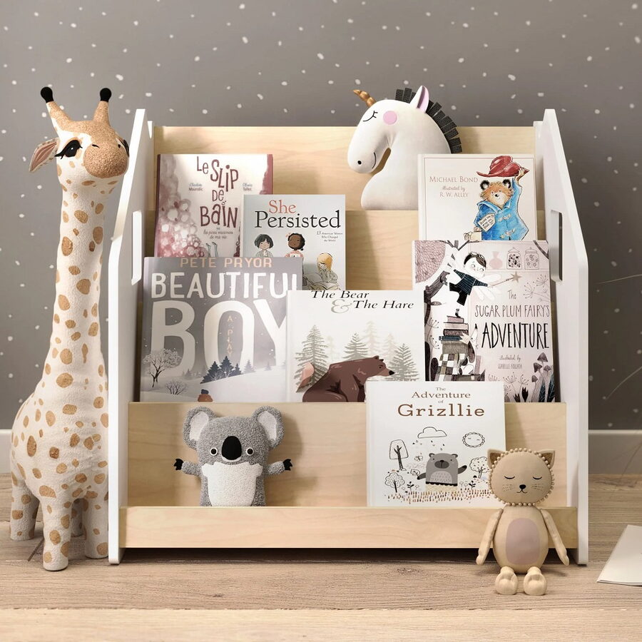 Tento stojan na knihy je navržen tak, aby podporoval dětskou samostatnost a rozvíjel jejich zájem o čtení. Díky tomu, že jsou knížky vidět obálkami dopředu, děti si snadno vyberou tu, která je zaujme a po přečtení ji zase jednoduše vrátí na místo. Police nabízí čtyři prostorné regály a zadní úložný prostor vhodný pro knihy či hračky. Robustní a bezpečná konstrukce s pečlivě zaoblenými hranami je ošetřena lakem na vodní bázi. Díky jednoduchému, čistému designu krásně zapadne do každého interiéru.Stojan je vyroben z kvalitní březové překližky a barevné odchylky, uzly či drobné opravy ve dřevě jsou přirozené a dodávají výrobku jedinečný charakter.Barva produktu se může mírně lišit od fotografie v závislosti na nastavení vašeho zařízení. Hlavní vlastnosti: bezpečný a odolný4 regály a zadní úložný prostorvyrobeno z kvalitní březové překližky, bezpečné laky na vodní bázivyrobeno v České republice