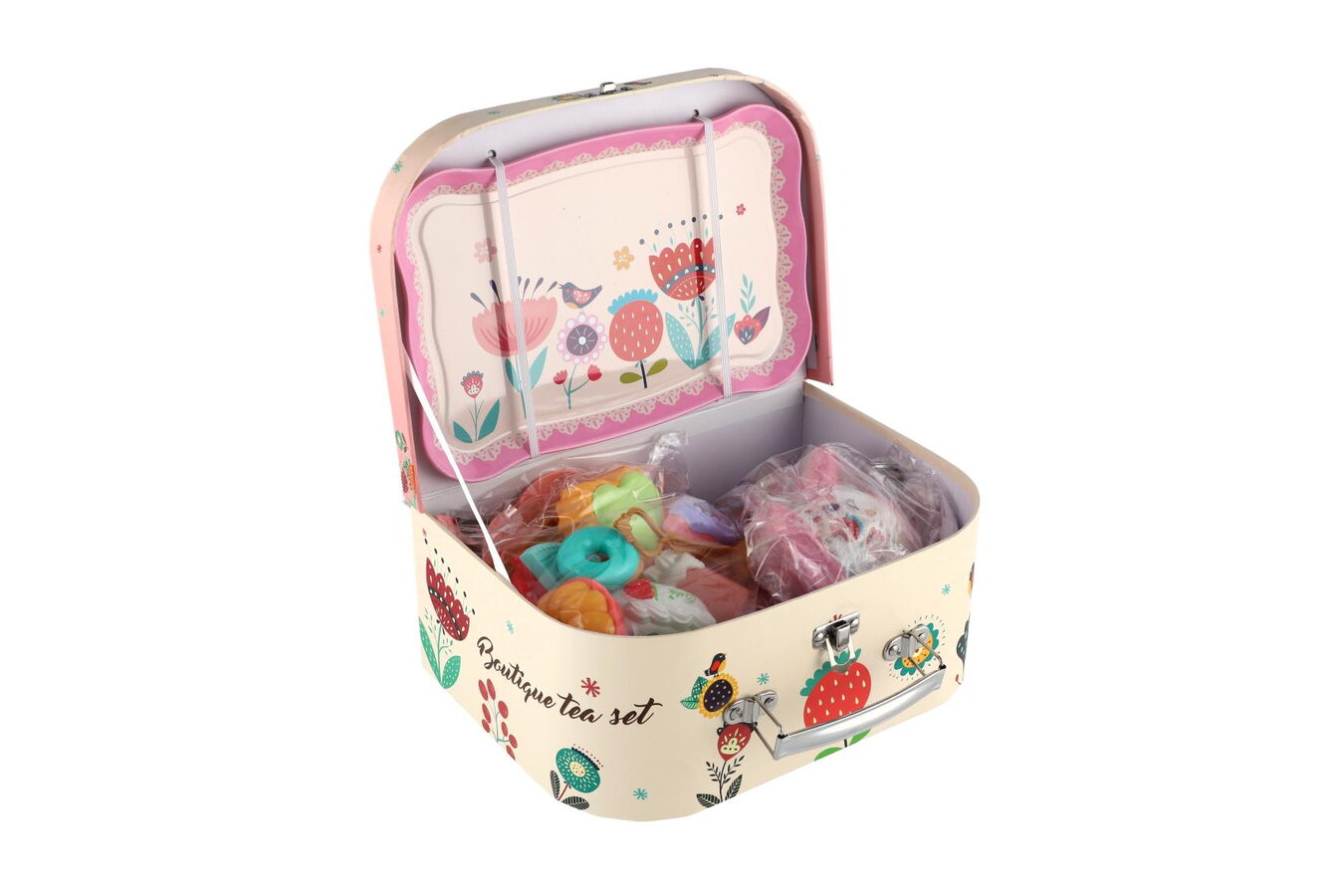 Každá malá holčička potřebuje mít ve své dětské kuchyňce nádobí, aby mohla vařit čaj i kávu pro své kamarádky a plyšáky. Sada obsahuje šálky s podšálky, lžičky, konvičku na kávu nebo čaj s víčkem, tác, podnos na zákusky, zákusty a další doplňky. Vše je uloženo v kufříku.
