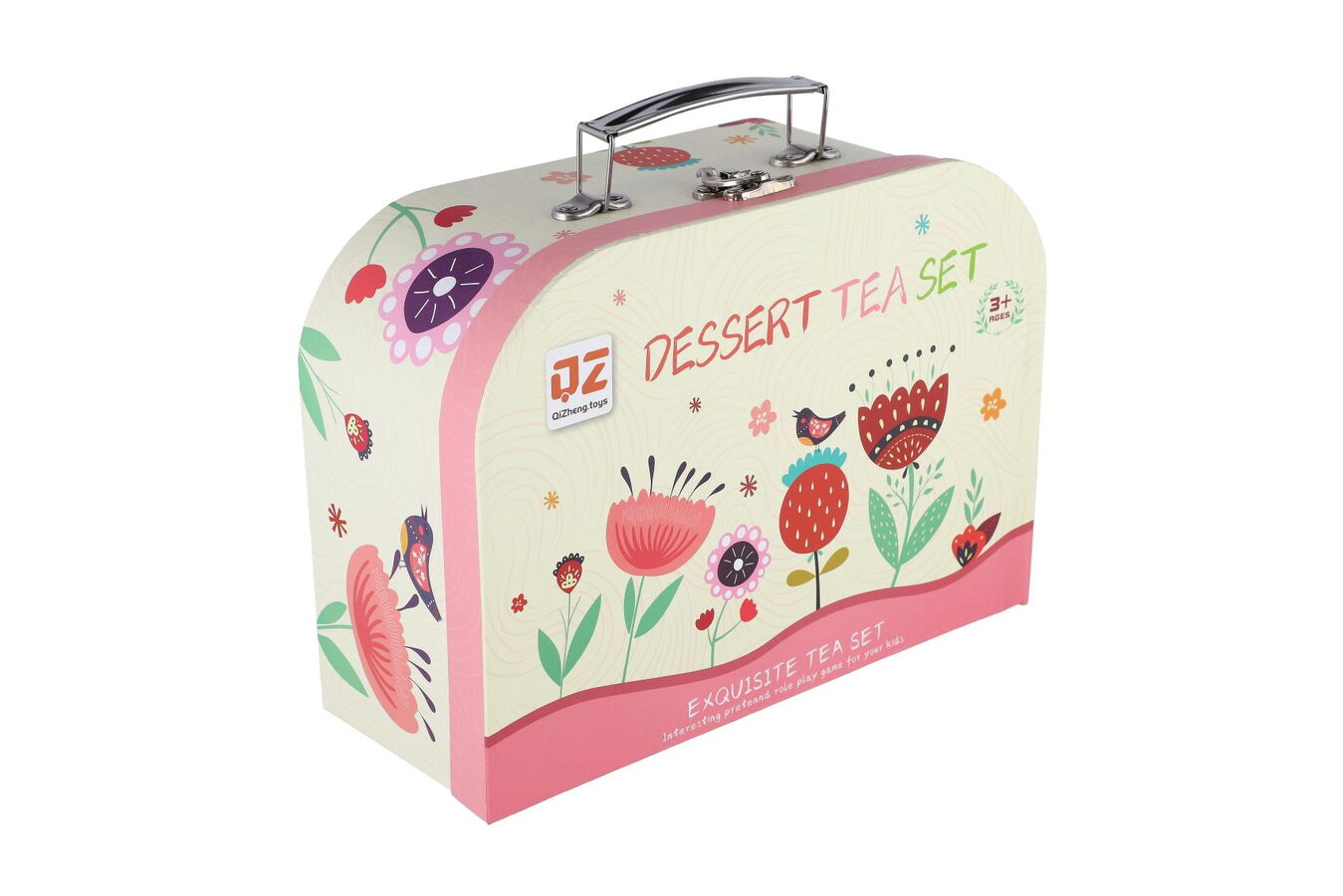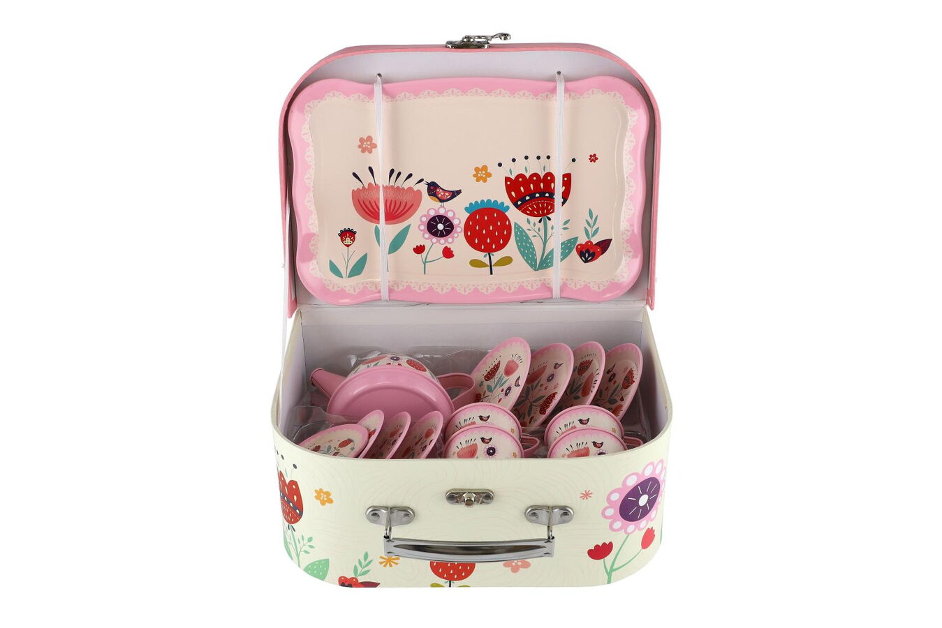 Čajová souprava je nezbytné vybavení každého dětského pokoje. Každá malá hospodyňka ho musí mít ve své kuchyňce, aby mohla slavnostně pohostit každou návštěvu! Čajová souprava umožňuje hrát si o samotě a připravit čaj pro panenky, medvídka nebo sourozence či rodiče. Nebo si můžete s přáteli uspořádat nezapomenutelný čajový dýchánek. Souprava obsahuje konvičku, 4ks šálků, 4ks podšálků, 4ks talířků a podnos. Vše je uloženo v praktickém kufříku.