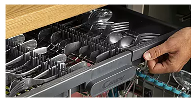 Třetí koš myček Candy je opatřen chytrou legendou, která jasně ukazuje, kam umístit příbory, abyste dosáhli nejlepších výsledků mytí.