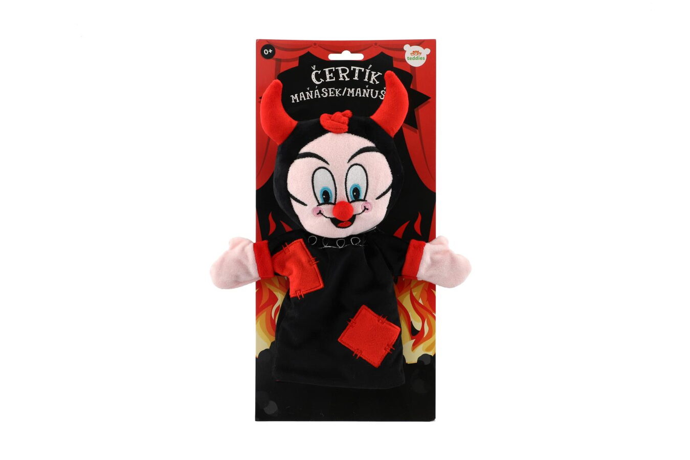 Čertík/čert maňásek na ruku plyšový 30cm na kartě 0m+