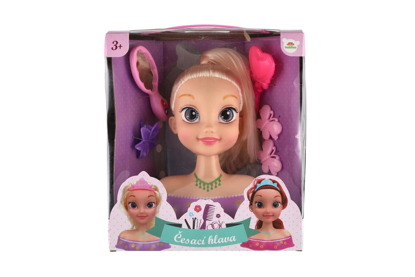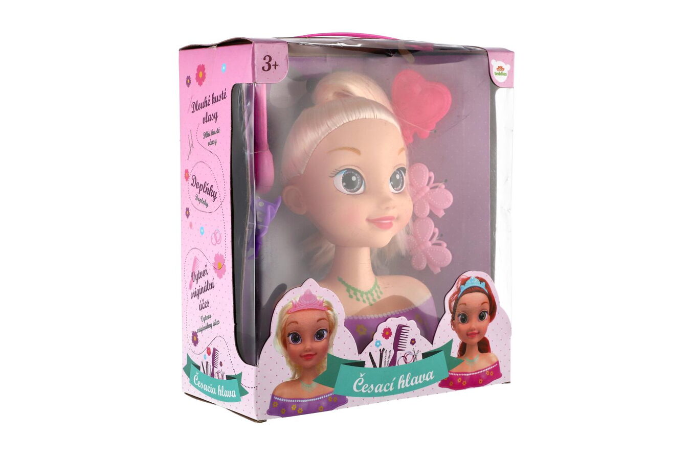 Česací hlava velká blond s doplňky v krabici 22x24x11cm