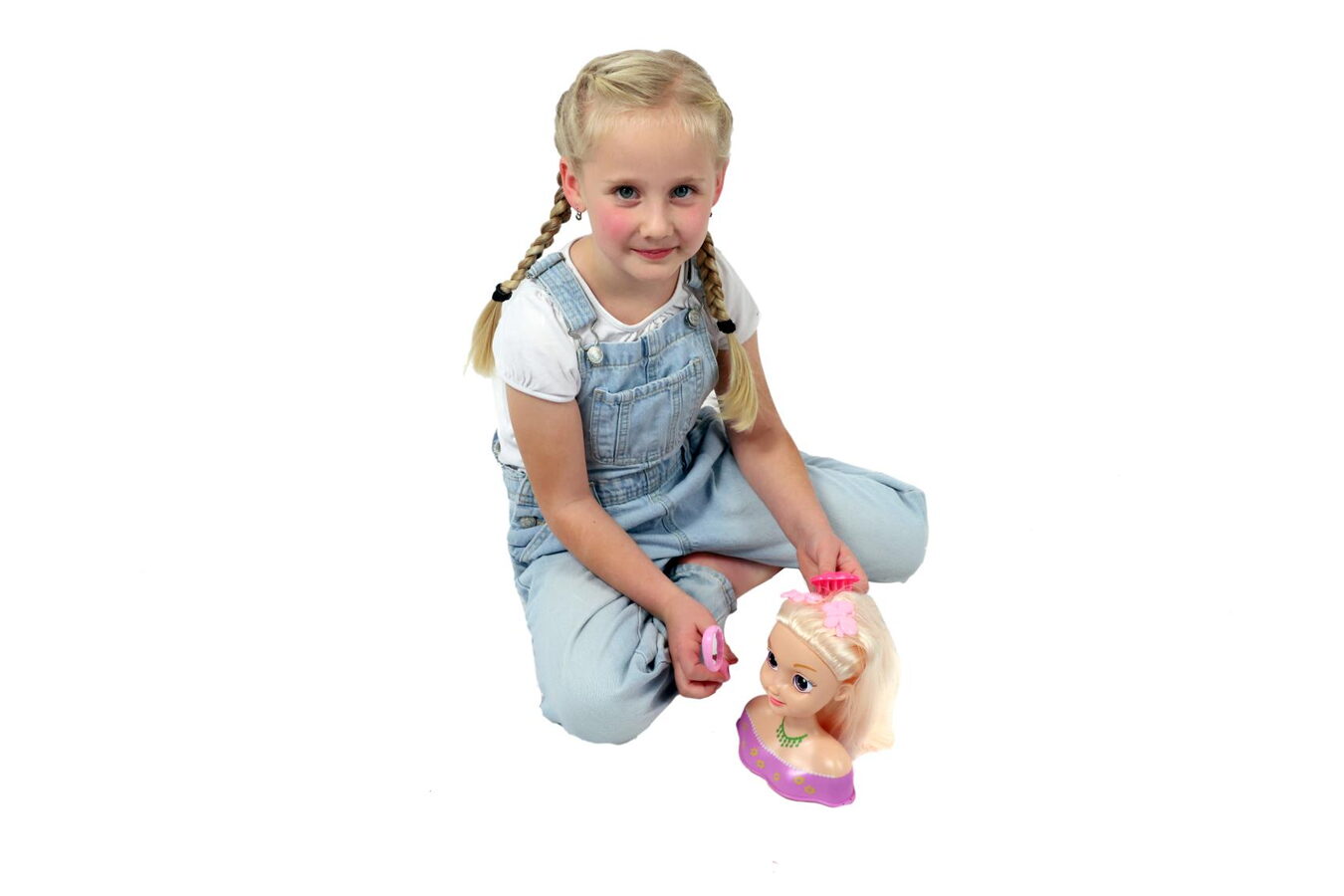 Každá malá slečna sní o tvoření nových a nových účesů pro svou panenku. V této sadě naleznete vše co potřebujete. Panenka, kterou naleznete v balení je skvělou zákazníci s hustými blonďatými vlasy. Zkuste culík, francouzský zapletený cop nebo záplavu malých copánků. Velmi kvalitní vlásky jsou vhodné pro jakýkoli účes, který Vás napadne. Zrcátko, sponky a hřebínek v balení jsou skvělými pomocníky pro tvorbu účesů.