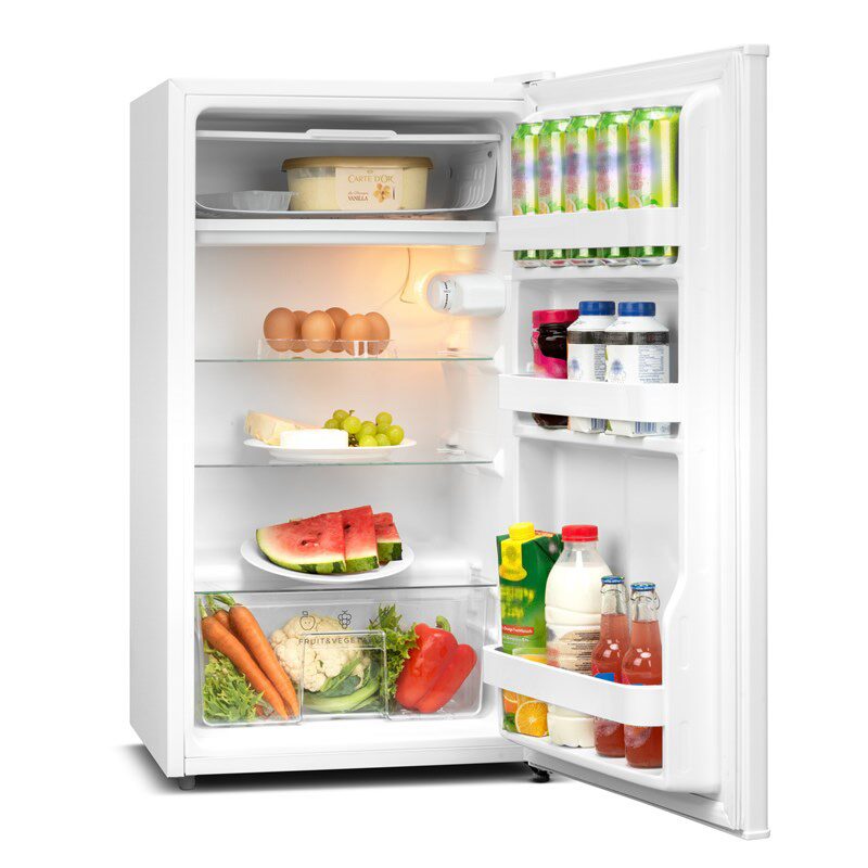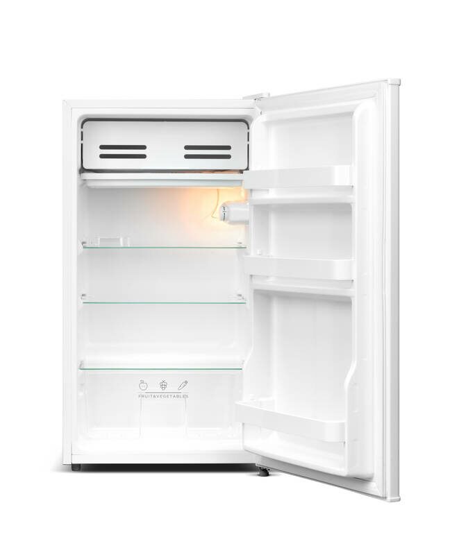 Jednodveřová chladnička s užitným objemem 93 litrů a energetickou třídou F.