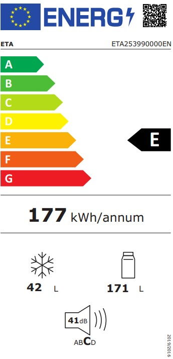 - Celkový užitný objem 213 l (chladnička 171 l / mraznička 42 l)