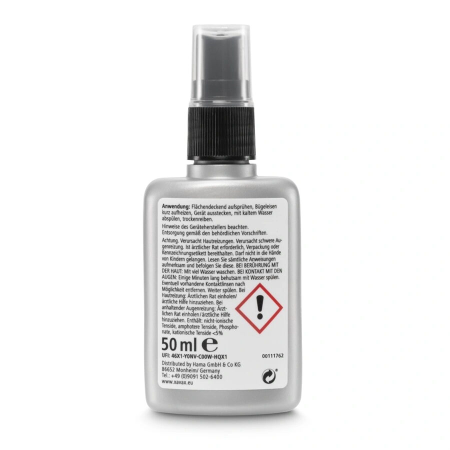 Čistič XAVAX působí rychle a díky vysoce účinným přísadám prodlužuje životnost žehličky. Stačí nastříkat na žehlicí plochu, krátce rozehřát, odpojit od sítě, opláchnout studenou vodou a otřít dosucha utěrkou z mikrovlákna, která je součástí balení.