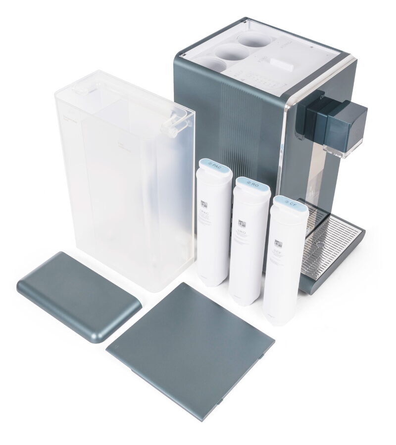 - CF filtr – Poslední krok k dokonalosti: uhlíkový filtr dolaďuje chuť a vůni vody, takže je ideální pro přípravu nápojů i vaření.