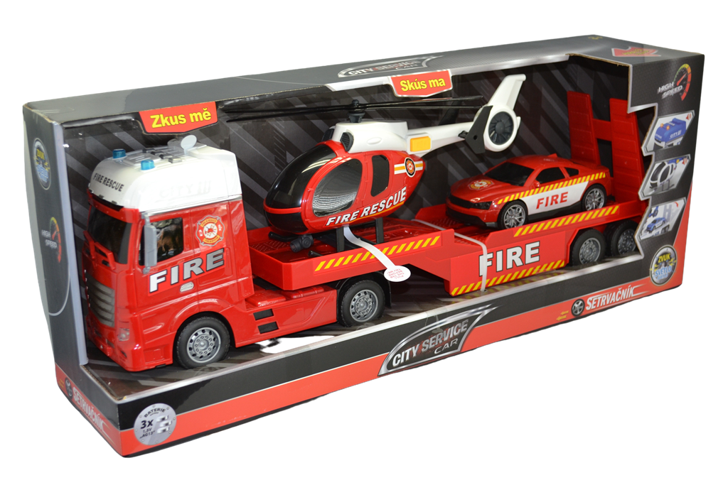 CITY SERVICE CAR - 1:12 Hasičský tahač s vrtulníkem a autem