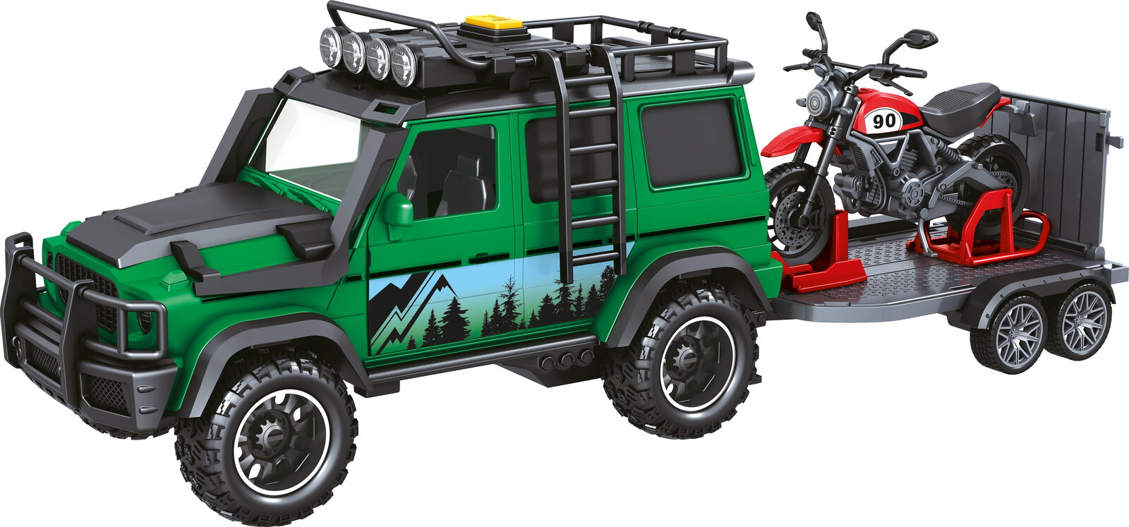 CITY SERVICE CAR - 1:14 - Vozidlo lesní stráže s přívěsem a motorkou (se zvukem a světly)