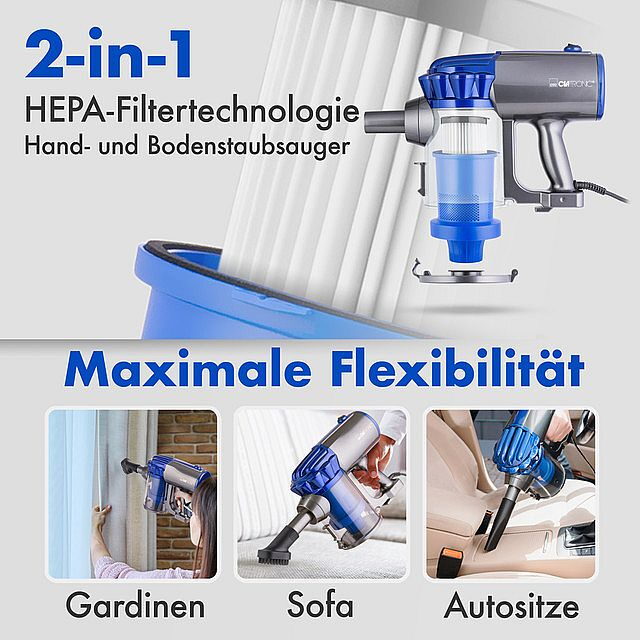 Proč mít doma 2 vysavače, když to bez problému zvládne podlahový a ruční vysavač v jednom? Model BS 1306 N funguje na principu Eco-Cyclon. Je vhodný pro vysávání například čalounění, obrazových rámů, interiérů aut, počítačů, knih, nábytku a spoustu dalších. Nečistoty se zachytávají ve vícenásobném filtračním systému včetně HEPA filtru. Hliníková trubka je výškově nastavitelné v rozmezí od 35-75 cm. Napájecí kabel je dostatečně dlouhý (6,5 m), nebude vás tak při úklidu omezovat. Výhodou je snadné čištění, nízká hmotnost a možnost montáže na stěnu. Součástí balení je hliníková trubice, sada montáže na stěnu, kartáčový nástavec, štěrbinový nástavec a podlahový kartáč. Napájení je 230 V, 50 Hz a výkon 600 W.