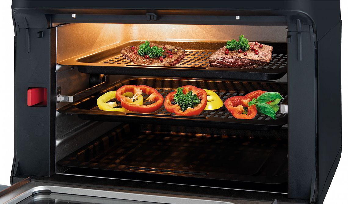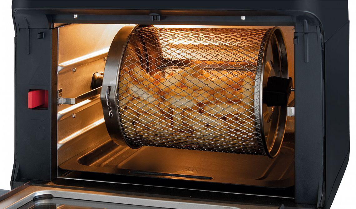 Univerzální horkovzdušná fritéza pro přípravu nízkokalorických pokrmů, které budou obsahovat až o 80 % méně tuku oproti klasickým fritézám. Připravované pokrmy také dokáží udržet mnohonásobně více živin a vitamínů, protože se opracovávají pouze horkým vzduchem. Díky tomu se produkce kouře a zápachů sníží na minimum.Tato horkovzdušná fritéza je vybavena 9 automatickými programy včetně individuálního nastavení času a teploty. Zároveň je vybavena funkcí dehydratace, která umožní přípravu ovoce, zeleniny, masa a dalších pokrmů. Uchováte tak pokrmy, které jsou bohaté na vitamíny a živiny důležité pro zdraví a pohodu.