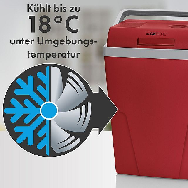 Tento chladicí box, který lze použít i jako autochladnička, je ideální pro kempování, cestování a nakupování. Lze v něm ohřívat i chladit. Jeho maximální kapacita je přibližně 22 litrů, a je tak ideální pro všechny standardní lahve. Chladicí box je chlazen díky integrovanému ventilátoru, který zvládne vnitřní prostor ochladit až o 18 °C pod okolní teplotu. Zařízení je energeticky úsporné a jeho plastový kryt je velice robustní. Navíc je vyroben z dvojité stěny pro perfektní tepelnou izolaci. Speciální guma ve víku snižuje kondenzaci.