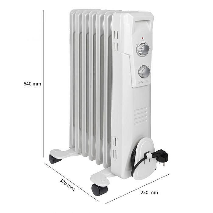 7žebrový olejový radiátor od značky Clatronic se skvěle hodí pro vytápění například kanceláří, ložnic, obývacích pokojů a dalších místností. Jeho výkon dosahuje až 1 500 W. Výkon lze nastavit ve 3 krocích (600/900/1500 W) podle individuální potřeby. Nastavení požadované teploty se provádí plynule nastavitelným termostatem.