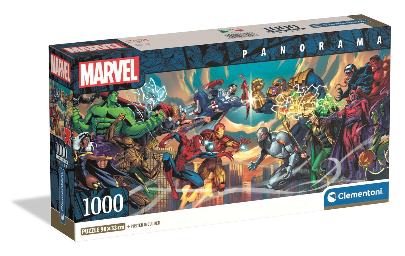 Clementoni - Puzzle 1000 Panorama Marvel Hrdinové vs. Záporáci