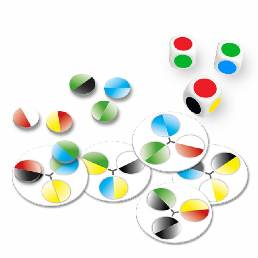 První na řadě hází všemi kostkami najednou a dle nastalé kombinace hledají všichni hráči správný žeton. Hráč, který najde žeton jako první jej umístí na jednu ze 7 karet hracího plánu. Žeton musí umístit na stejně barevné kolečko. Pokládá ho rubem nahoru, aby byla viditelná strana se 4 barvami, a nasměruje svou barvu ke středu karty (tam kde je čárka). Tím určuje, že je žeton jeho a získává body dle tabulky. Počet hráčů 2-5.