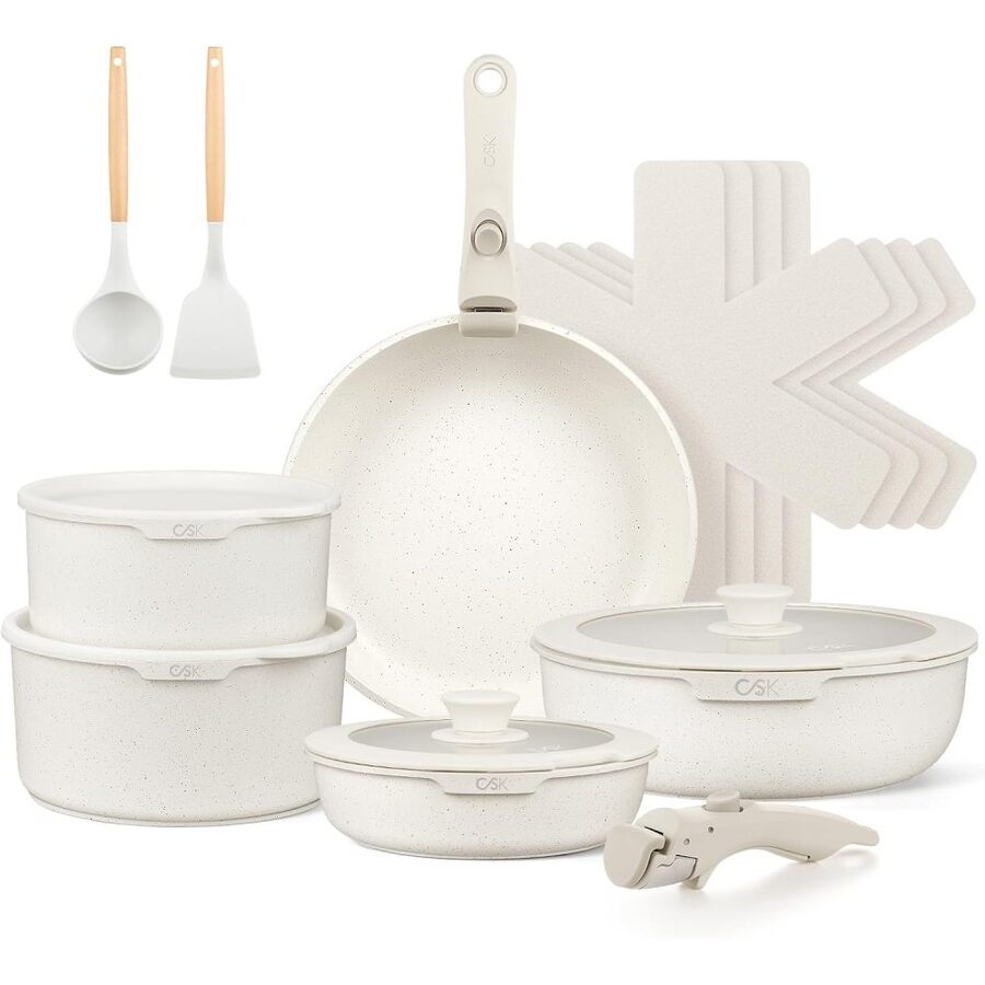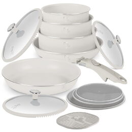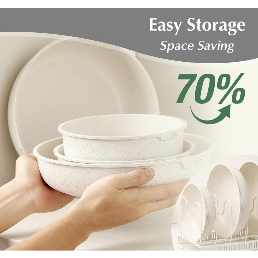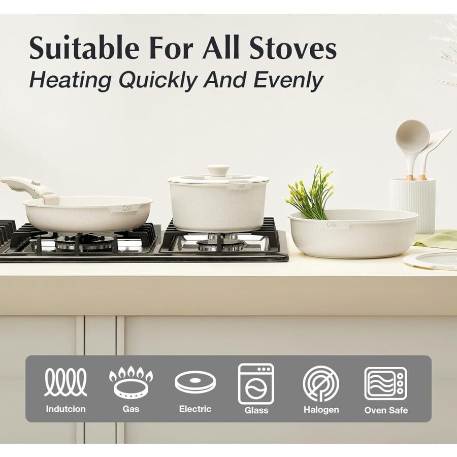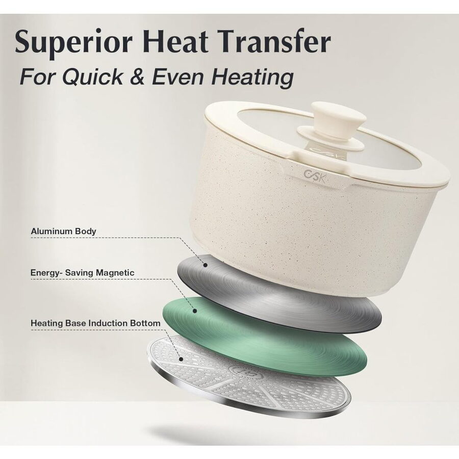 Luxusní design, vynikající nepřilnavý povrch a univerzální použití dělají z této sady ideální volbu pro každého, kdo miluje vaření s elegancí a stylem.