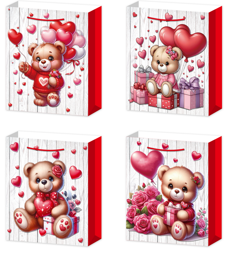 Dárková taška M - Medvídek se srdíčky