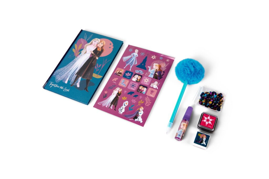 Stylová dekorační sada Ledové království potěší všechny fanoušky Anny a Elsy. Sada obsahuje tři různé varianty deníčků s originálními motivy, které jsou ideální na zapisování poznámek, tajemství nebo denních zážitků. Každý deník je doplněn drobnými dekoračními prvky – samolepkami a ozdobami – díky nimž si lze zápisník upravit podle vlastní fantazie.