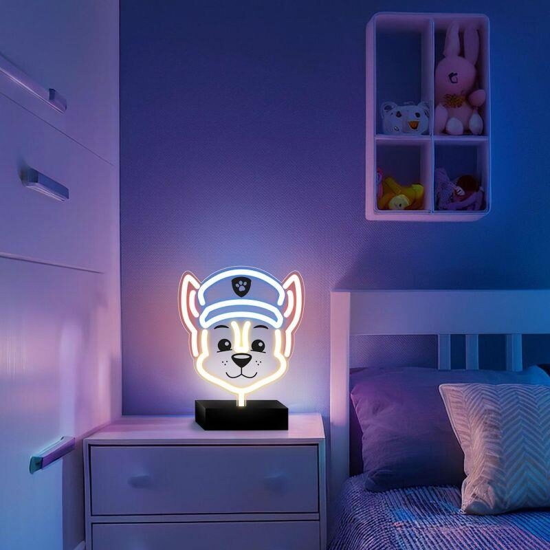 Neonové LED světlo na stojanu s motivem Tlapkové patroly představuje dokonalý dekorativní prvek do dětského pokoje.