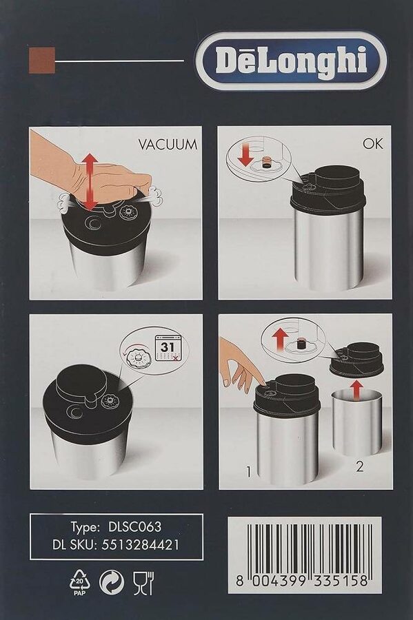 Vždy čerstvá káva: vakuově uzavřená nádoba na skladování kávy, takže káva je vždy čerstvá. Kvalitní materiály: leštěné tělo z nerezové oceli pro trvalou ochranu před vlhkostí, škůdci a UV zářením. Sledování data: vestavěný ukazatel data pro sledování čerstvosti zrnkové kávy a potravin. Pro každého milovníka kávy: velkorysá nádoba o objemu 1,3 l, do které se vejde 400 g zrnkové kávy Lepší chuť: ideální pro zachování organoleptických…