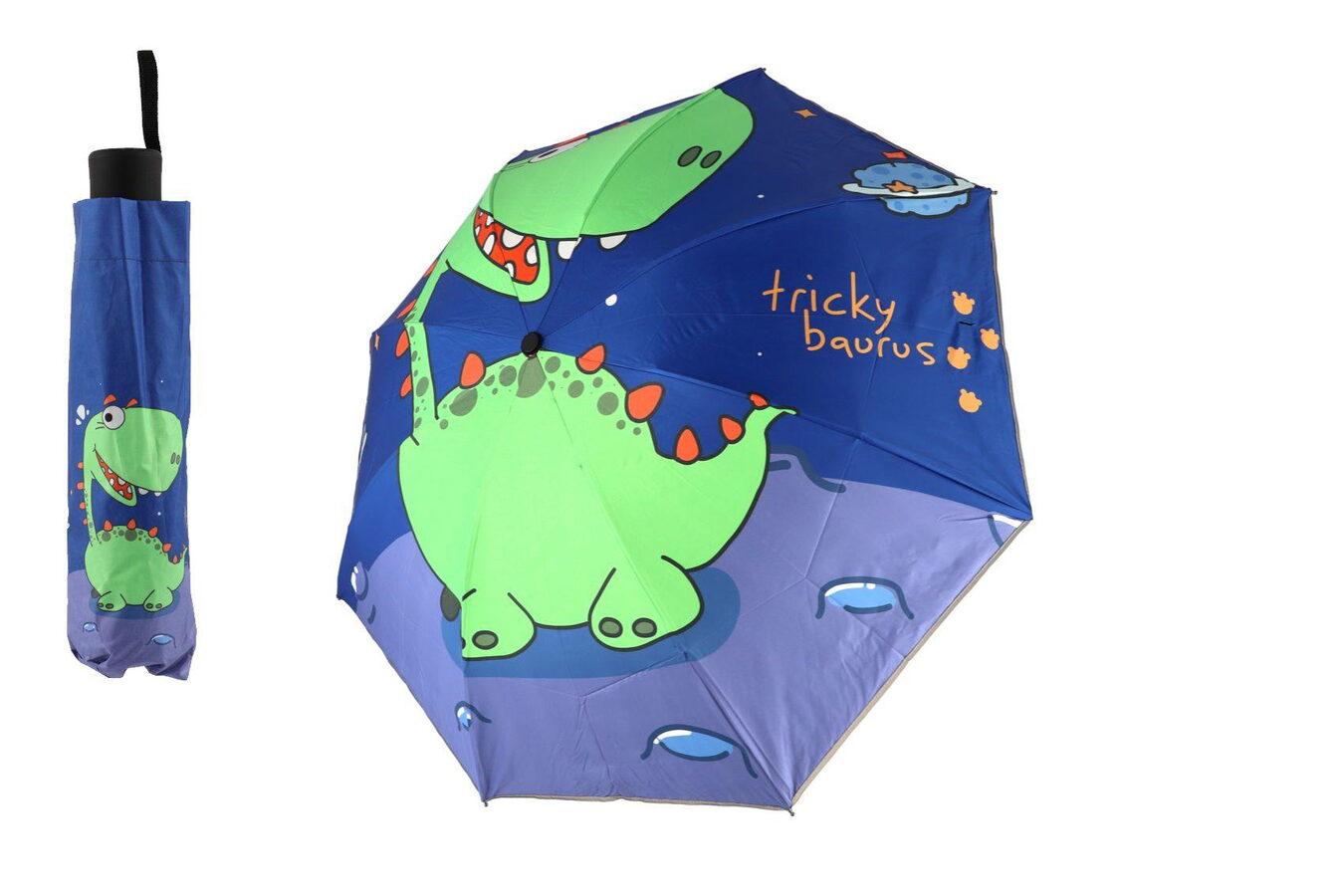 Deštník Dinosaurus skládací látka/kov 25cm modrý v sáčku