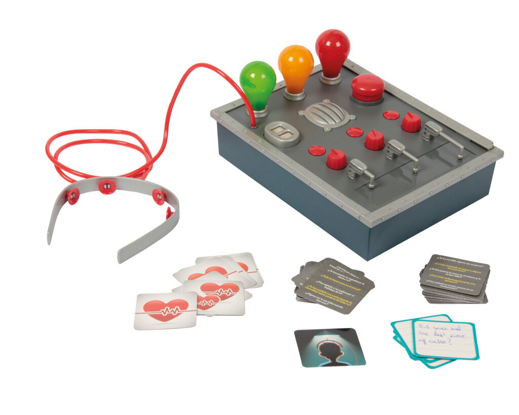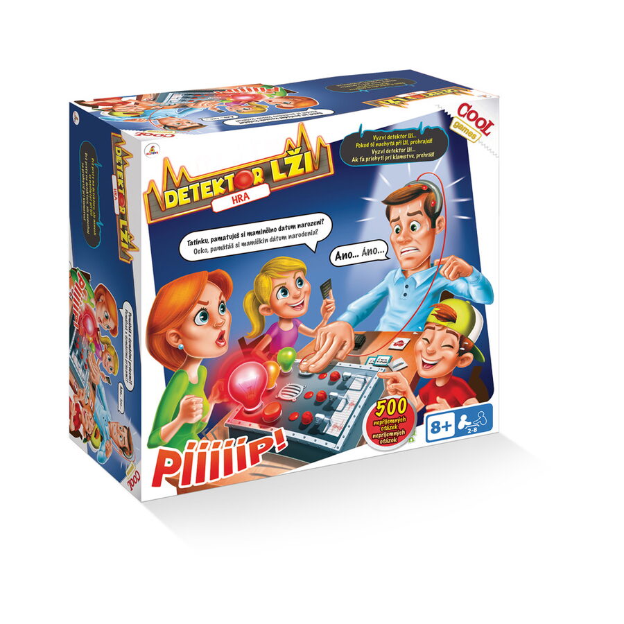 Myslíte si, že vaši přátelé mluví vždy pravdu? Ověřte si to s touto zábavnou hrou! Vyberte kartu, položte otázku a sledujte, co odhalí barevné žárovky detektoru pravdy. Jak hrát? Vyber kartu a zeptejte se hráče jakoukoliv otázku Detektor odhalí, zda mluví pravdu nebo lže Pokud je to lež, hráč ztratí život! Poslední hráč s největším počtem životních karet vyhrává!
