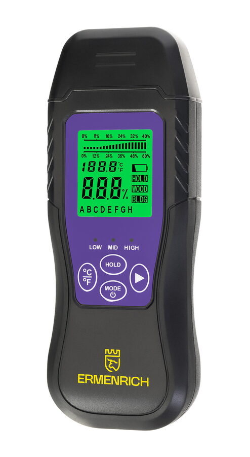 Přenosný detektor vlhkosti (vlhkoměr) Ermenrich Wett MW30 umožňuje rychlé měření vlhkosti stavebních materiálů a dřevěných výrobků. To má význam zejména při nákupu materiálu, ve výrobě, v truhlářství a při údržbě v domácnosti. Přístroj může pracovat s materiály, jako je lepenka, řezivo, beton, omítka atd. Má zabudovaný teploměr, který dokáže měřit teplotu ve dvou jednotkách měření: Celsia a Fahrenheita.