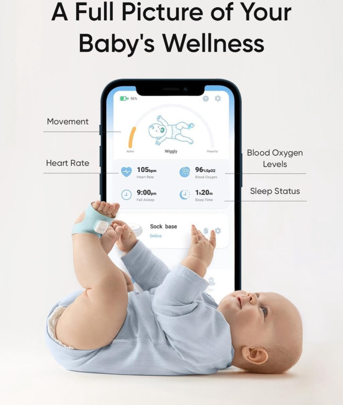 Smart Sock jsou vyrobeny z prodyšného a omyvatelného materiálu. Dodává se ve třech velikostech pro děti od 0 do 18 měsíců a lze ji pohodlně nosit na obou nohách.