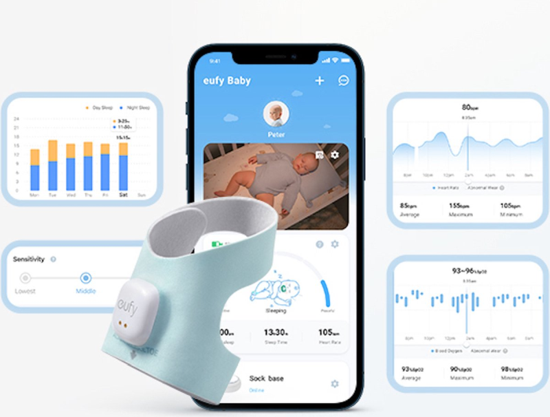 Dlouhá výdrž baterie eufy Baby Smart Sock umožňuje až 24 hodin sledování na jedno nabití, takže se můžete v klidu vyspat.