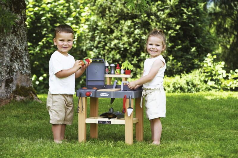 Letní kuchyňka Ecoiffier s pecí na pizzu a grilem je ideální volbou pro malé kuchaře od 18 měsíců. Děti si vyzkouší přípravu pizzy, grilování i mytí nádobí a užijí si spoustu zábavy pod širým nebem.