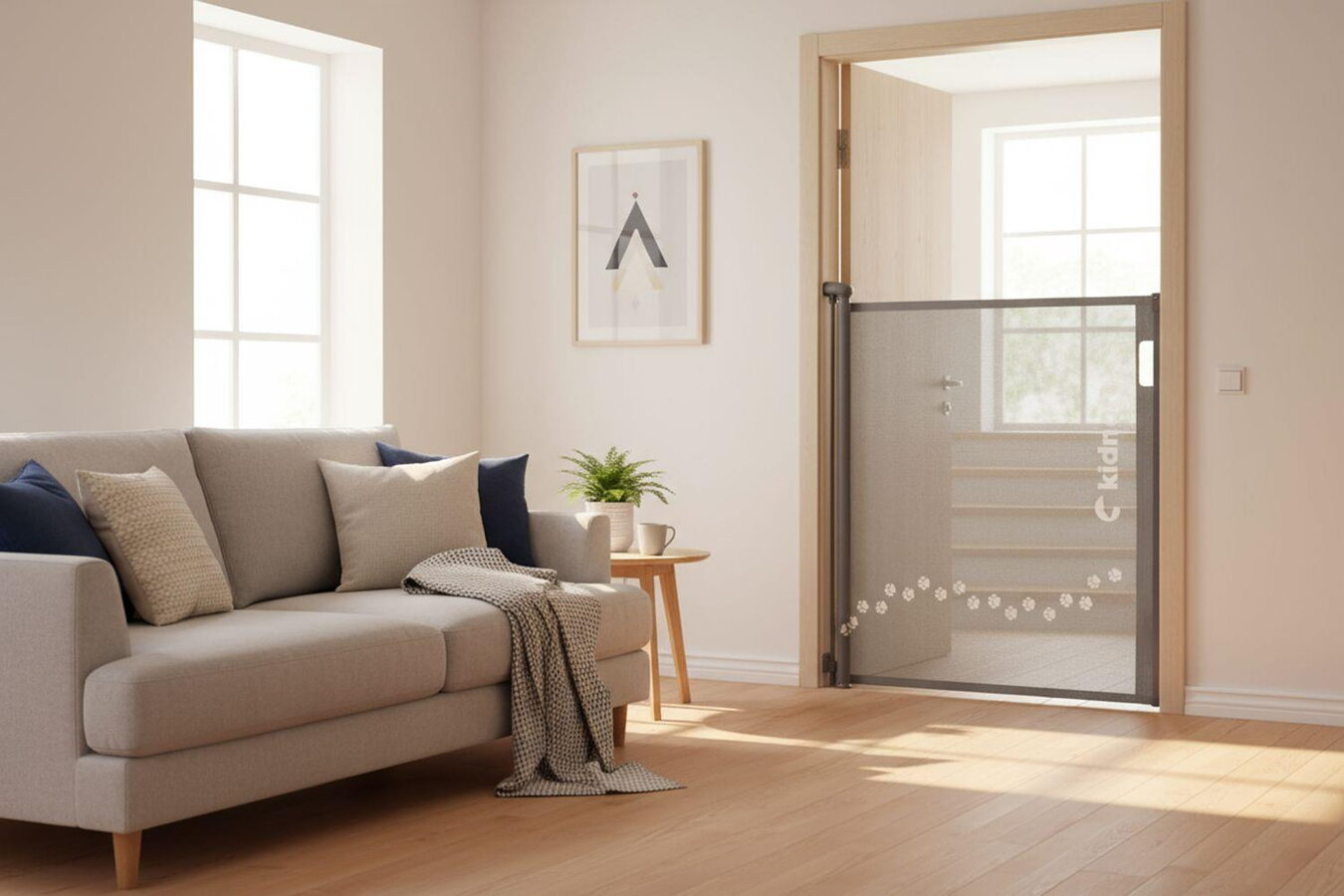 Ochranná zábrana Sakerhet je ideální nejen pro domácnosti s malými dětmi, ale i se zvířecími mazlíčky. Síťovina je pevná, ale jemná na dotek, a spolu se stabilní konstrukcí zajišťuje odolnost a dlouhou životnost. Pomáhá zabránit přístupu k nebezpečným místům a zvyšuje bezpečí celé rodiny – i vašich čtyřnohých přátel.