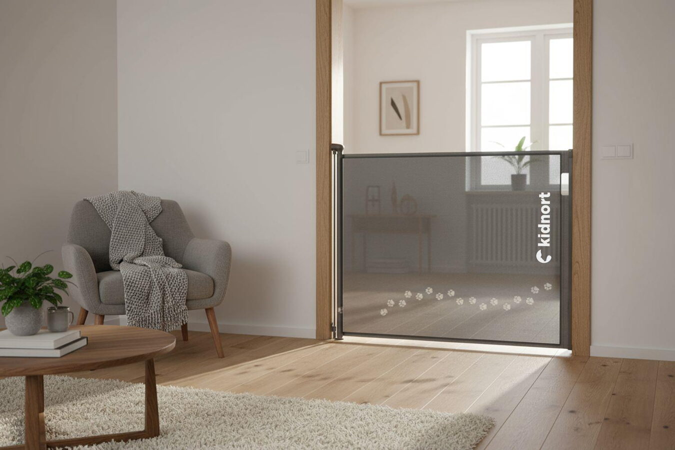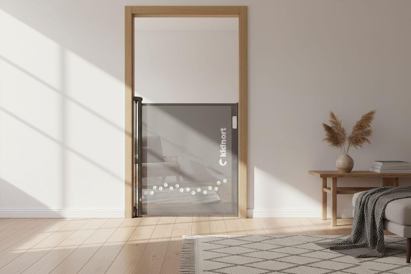 Zatahovací ochranná branka Sakerhet zajistí bezpečí vašich dětí i mazlíčků. Díky nastavitelné šířce až 140 cm, rolovací síťovině a dvojitému zámku se dokonale přizpůsobí každému prostoru – praktická, stylová a spolehlivá volba pro váš domov.
