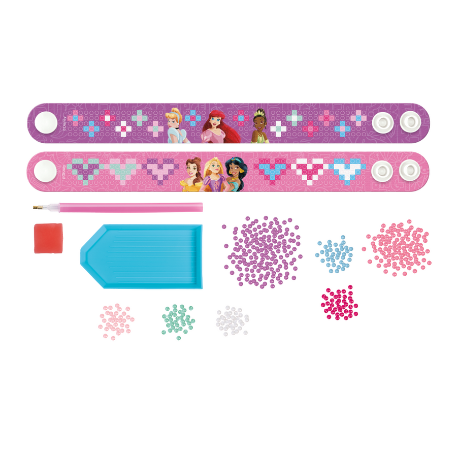 Vytvoř si své vlastní zářivé náramky s motivem Disney Princezen s pomocí diamantového malování! Tato zábavná kreativní sada obsahuje vše potřebné k ozdobení dvou originálních náramků třpytivými kamínky. Skvělá aktivita pro děti i dospělé, která podporuje fantazii a jemnou motoriku. Součástí balení aplikátor, dva ks náramků, pořadač, vosk a barevné kamínky.