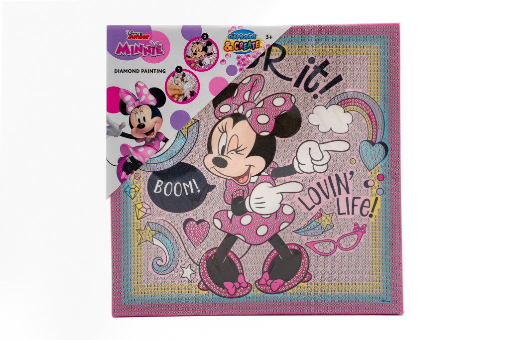 Diamantové malování na plátno – různé motivy – Ledové království, Disney Princezny, Disney Minnie, Malá mořská víla, Spiderman a Stitch. Velikost obrázků 29×29×2 cm.