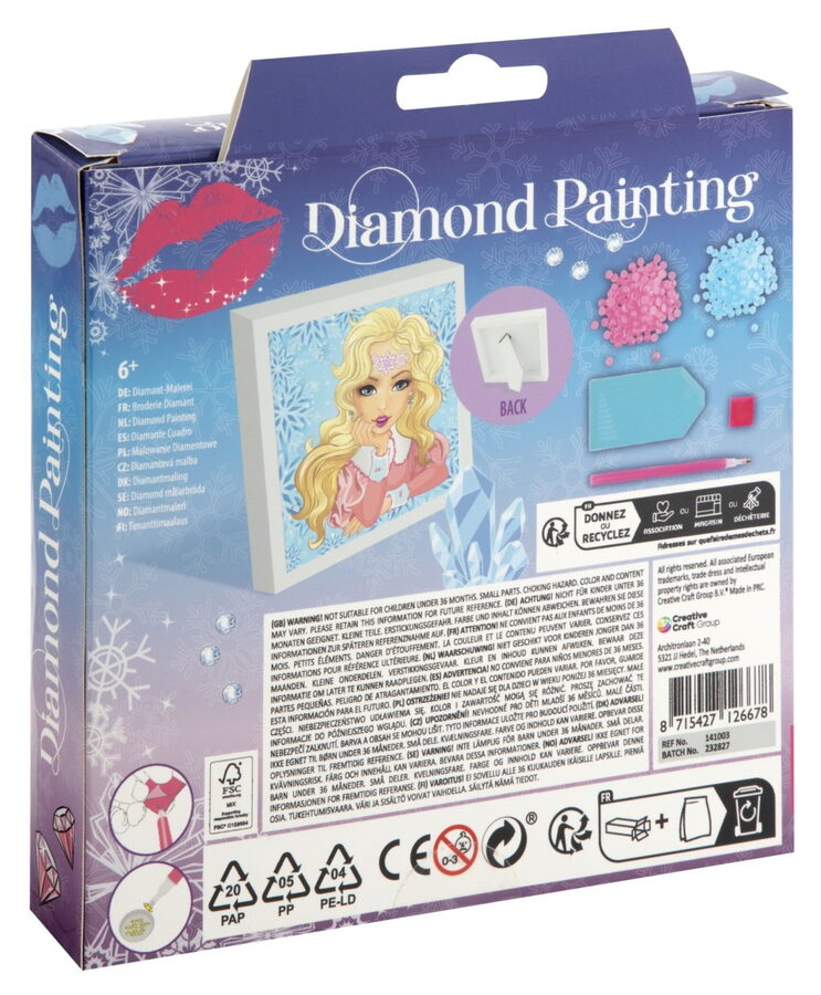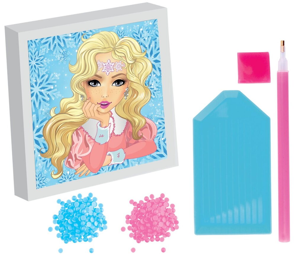 Diamantové malování s rámečkem Besties. Balení obsahuje obrázek, rámeček, kamínky modré a růžové, aplikátor a pořadač. Velikost rámečku je 15×15 cm.