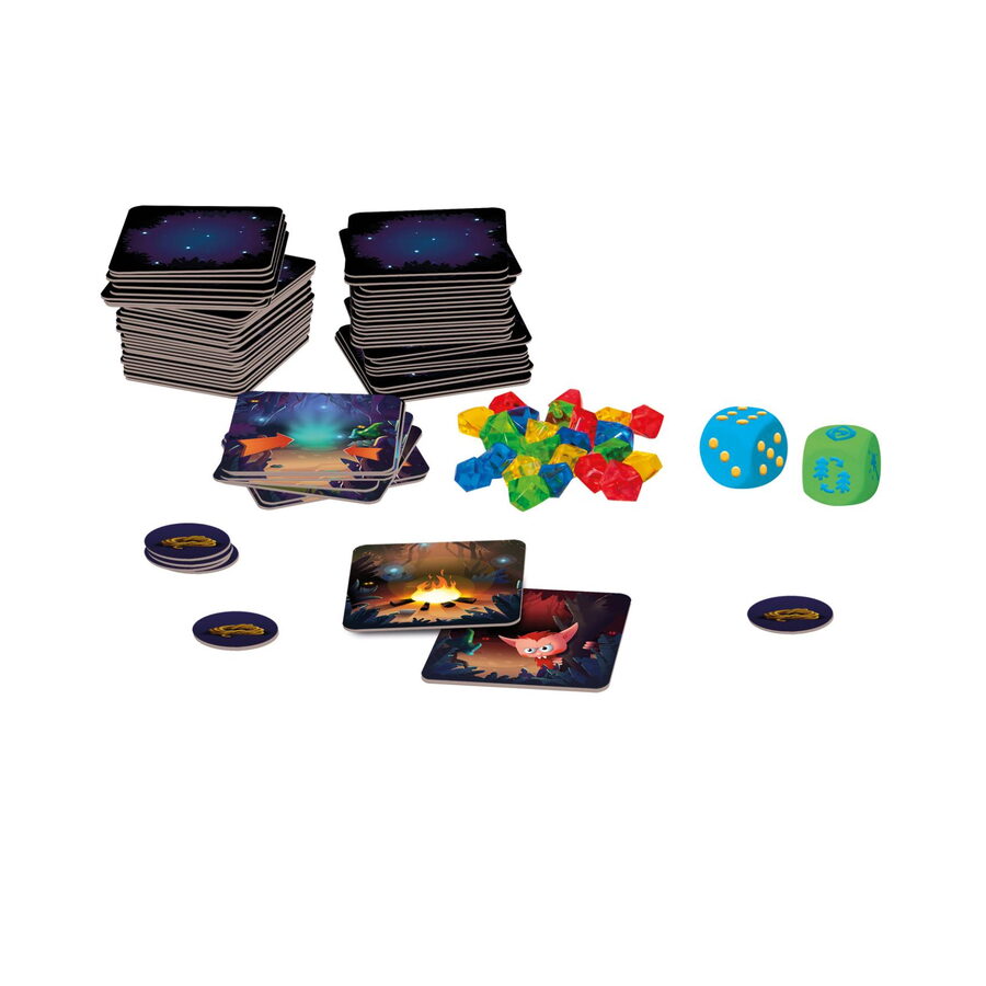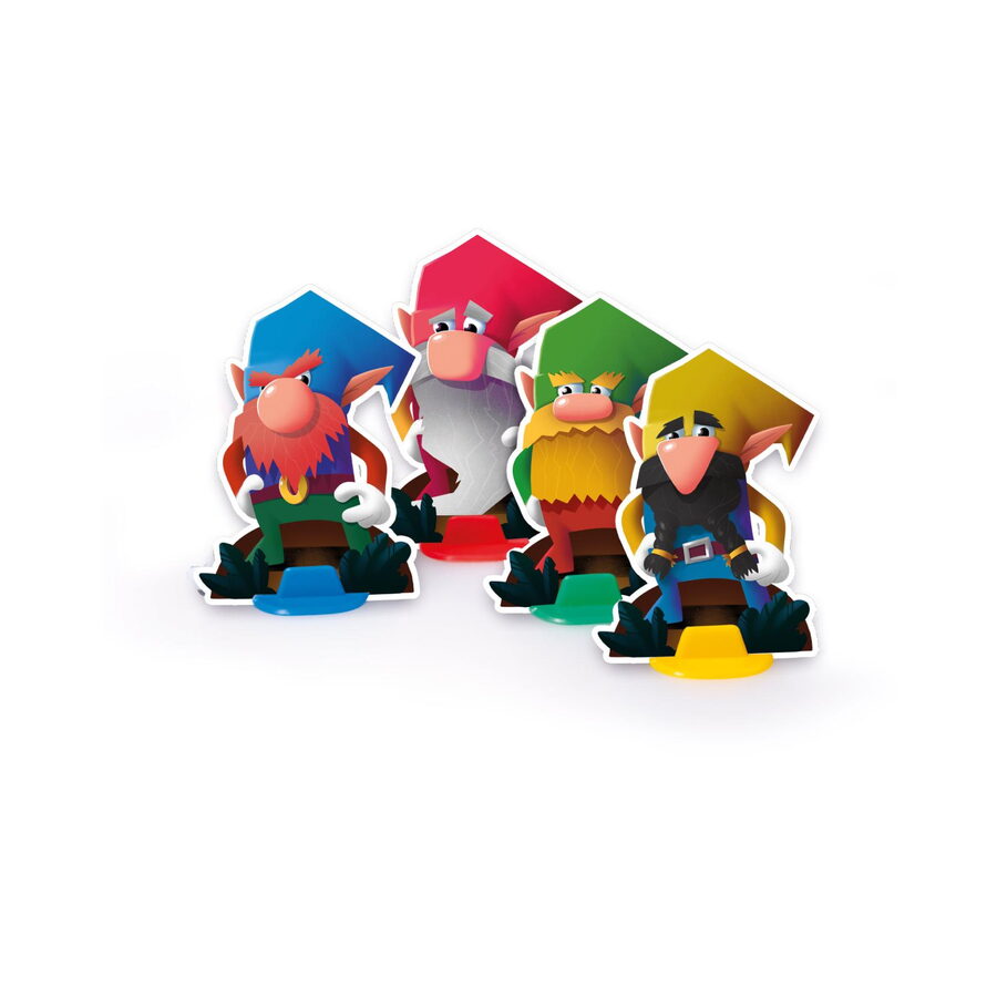 Hra obsahuje: 81 herních dílků 16 diamantů 15 žetonů vybavení 4 figurky trpaslíků 4 stojánky k figurkám 1 kostku s body 1 kostku se symboly