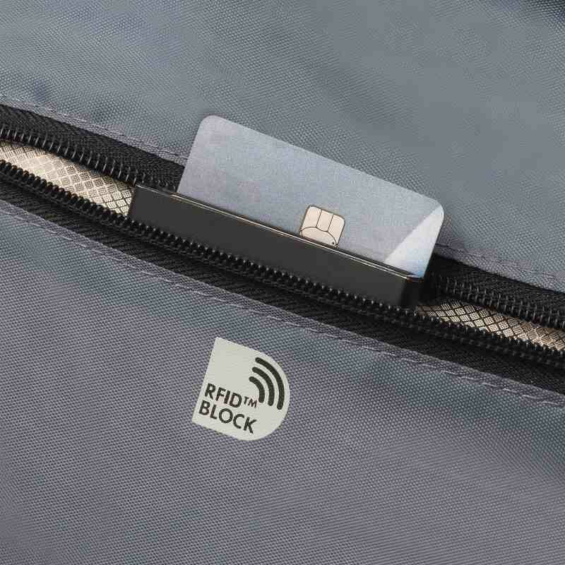 Tato taška kombinuje bezpečnost a funkčnost s uzamykatelnou, polstrovanou přihrádkou na notebook, která nabízí optimální ochranu díky zesílenému rámu. Přední kapsa je speciálně navržena pro mobilní příslušenství a kapsa na zip nabízí úložný prostor pro síťový adaptér a kabel. Skrytá přihrádka na GPS tracker umožňuje mít tašku stále pod dohledem, zatímco kapsa na zip s RFID blokátorem chrání osobní data před neoprávněným přístupem. Důležité dokumenty lze bezpečně uložit do kapsy na dokumenty na zadní straně, zatímco polstrovaný ramenní popruh umožňuje pohodlné nošení. Popruh na vozík usnadňuje připevnění tašky ke kufru. Taška je doplněna vodoodpudivým materiálem, který spolehlivě ochrání obsah před povětrnostními vlivy.