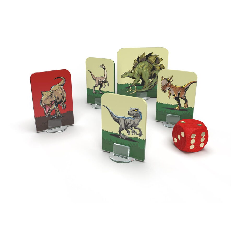Dinosauři z oblíbeného seriálu Jurský svět utekli ze svých výběhů a teď se protloukají nebezpečnou džunglí, kde se snaží vytvořit nový domov. Ale pozor – hladový T-rex a další mazaní protivníci Vám to rozhodně neulehčí! Vyhýbejte se překážkám, chytře pokládejte nástrahy a překvapte své soupeře, abyste dorazili do bezpečí jako první! Zábavná hra pro všechny malé dobrodruhy a milovníky dinosaurů od 5 let. Obsah balení: 1 herní plán8 kartonových figurek se stojánky1 hrací kostka1 pravidla Hlavní vlastnosti: vhodné od 5 let věkurozvíjí představivost, strategické myšlení procvičuje jemnou motorikupodporuje kreativitu a představivost vyrobeno v ČR