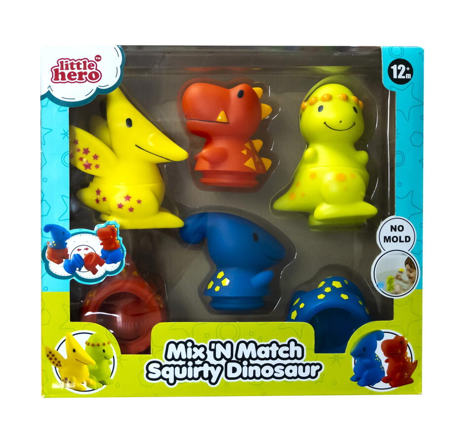 Zábavná hračka nejen do vany. V balení najdete 4 gumové stříkací dinosaury. Dinosauři mají rozdělávatelná těla, můžete si tak sestavit vlastního dinosaura.