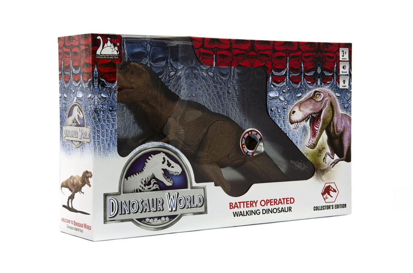 Dinosaurus tyranosaurus chodící plast 40cm na baterie se světlem se zvukem v krabici
