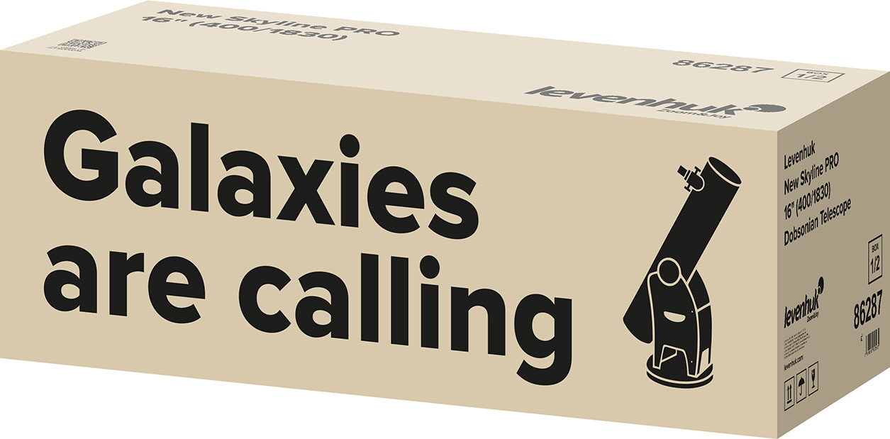 Jako nejvýkonnější přístroj své řady je hvězdářský dalekohled Levenhuk New Skyline PRO 16" Dobson univerzálním klíčem k tajemstvím hlubokého vesmíru. Jeho 406mm apertura a ohnisková vzdálenost 1830 mm vám umožní detailně prozkoumat naši sluneční soustavu a rozlišit jemné struktury ve vzdálených galaxiích, mlhovinách a hvězdokupách. Tento hvězdářský dalekohled odhaluje nejjemnější detaily našich nebeských sousedů. Na Měsíci rozlišuje krátery, rýhy a hřebeny o velikosti 1–2 km, zejména v blízkosti terminátoru. Můžete rozeznat skvrny a víry v oblačných pásmech Jupiteru, složité mezery v Saturnových prstencích a maria, polární čepičky a prachové bouře na Marsu. Fáze Venuše jsou zřetelné a Uran a Neptun můžete pozorovat spíše jako jasné kotouče než jako pouhé světelné body. Za dobrých atmosférických podmínek lze pozorovat spirální struktury a prachové dráhy v největších galaxiích, plynná mračna a temné prázdnoty v mlhovinách, rozptyl hvězd v kulových hvězdokupách a dvojité a vícenásobné hvězdy. Levenhuk New Skyline PRO 16" zaujme již od první minuty pozorování.