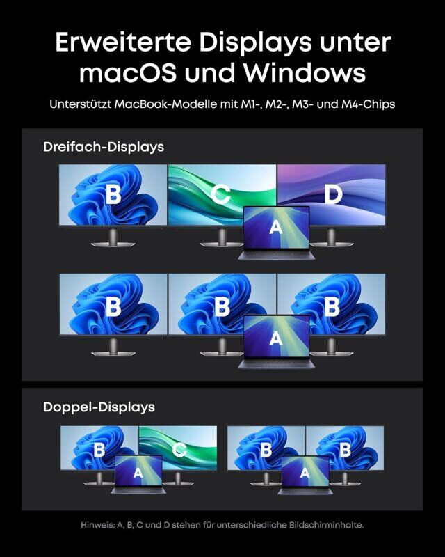 (Upozornění: 8K pouze na monitorech, které podporují 8K. Je nutný ovladač DisplayLink.)
